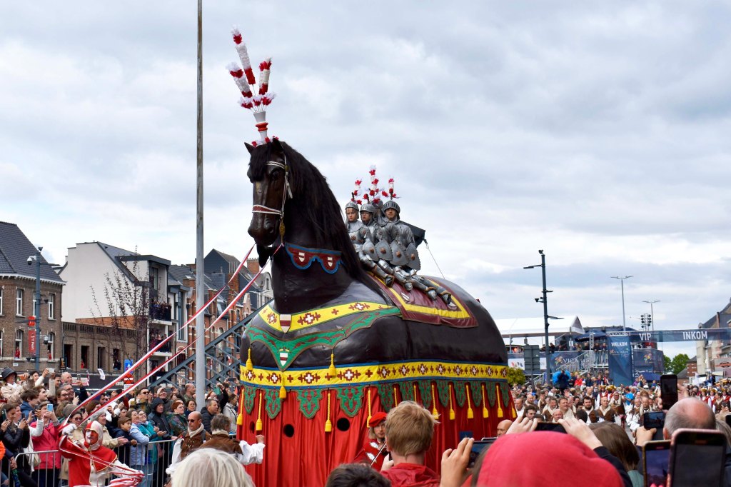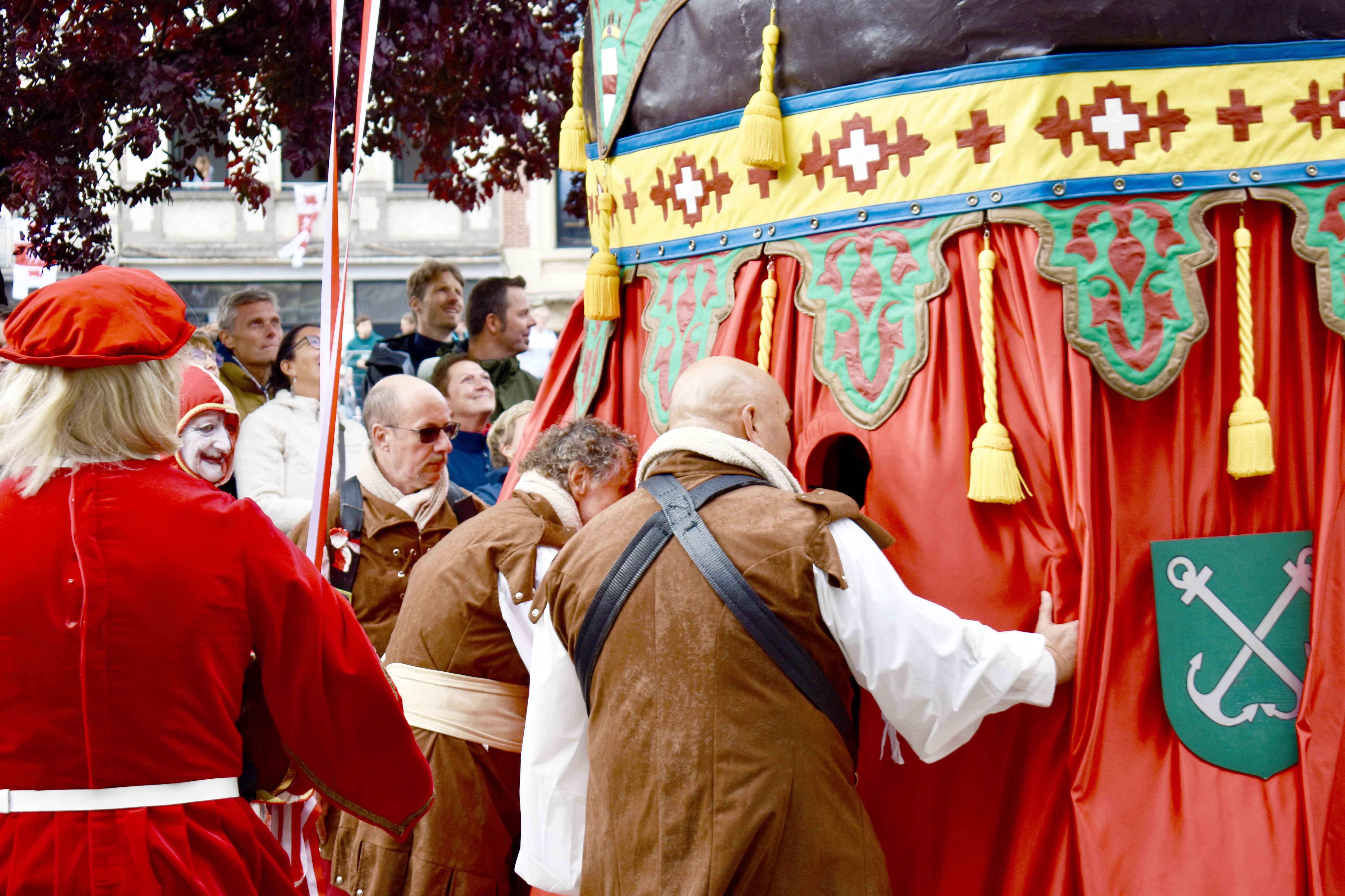 It may be hard to believe but every citizen of Dendermonde has been longing very much for this parade: schools have been preparing their pupils for the parade, organisations have put their activities in the Ros Beiaard theme, most houses have hung the red-and-white flag, and so on. This is the most important event happening every 10 years. Most of all, the Ros Beiaard is a ‘connecting’ event: it connects people in a very warm way. For many citizens of Dendermonde, the Ros Beiaard Parade is an emotional issue because every parade could be the last one they see. Many people count their age by calculating how many times they have seen the Ros Beiaard in their lifetime. And the eldest are doubtful whether they will see the next Parade in 2030…