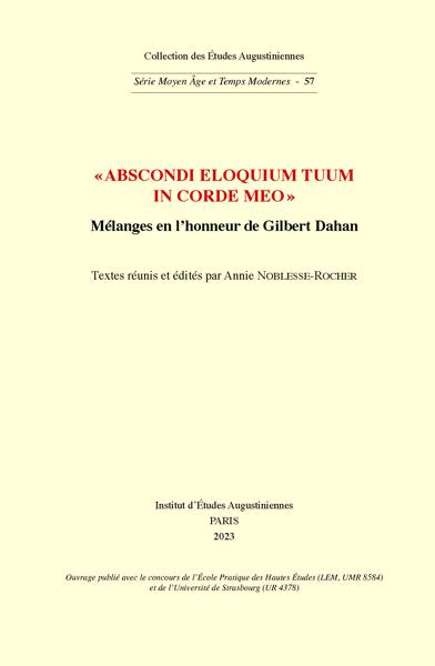 Annie Noblesse-Rocher (ed.), «Abscondi eloquium tuum in corde meo» Mélanges en l’honneur de Gilbert Dahan (Brepols, 2024)