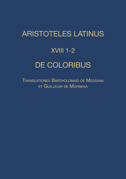 Lisa Devriese (ed.), Aristoteles Latinus. De coloribus. Translationes Bartholomaei de Messana et Guillelmi de Morbeka. Brepols, 2025