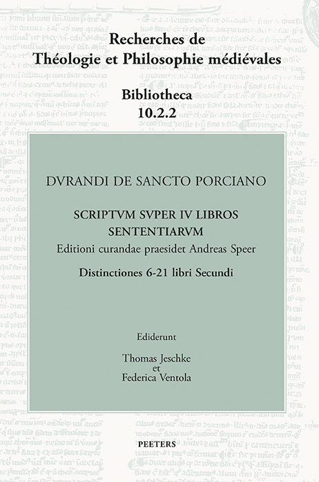 Thomas Jeschke and Federica Ventola (eds.), Durandi de Sancto Porciano Scriptum super IV Libros Sententiarum. Distinctiones 6-21 Libri Secundi. Peeters 2024