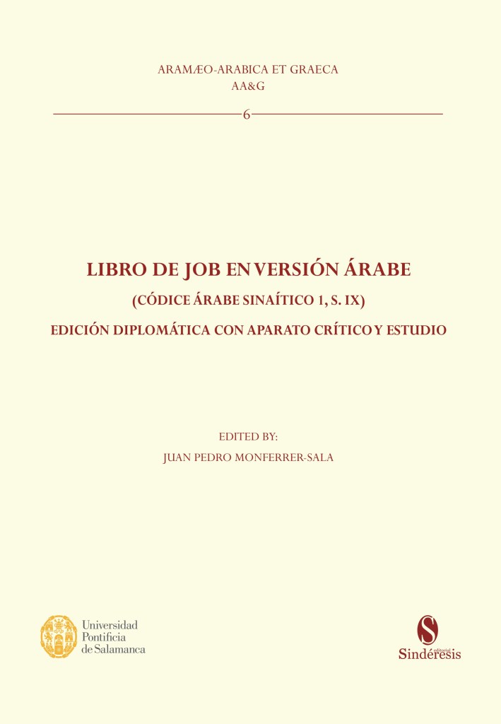 Juan Pedro Monferrer Sala (ed.), Libro de Job en versión árabe (Códice Árabe Sinaítico 1, S. IX): Edición diplomática con aparato crítico y estudio (Universidad Pontificia de Salamanca – Editorial Sindéresis 2022)